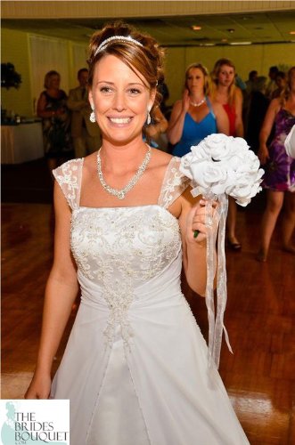 - Title : White Silk Rose Toss Bouquet - Silk Wedding Toss Bouquet