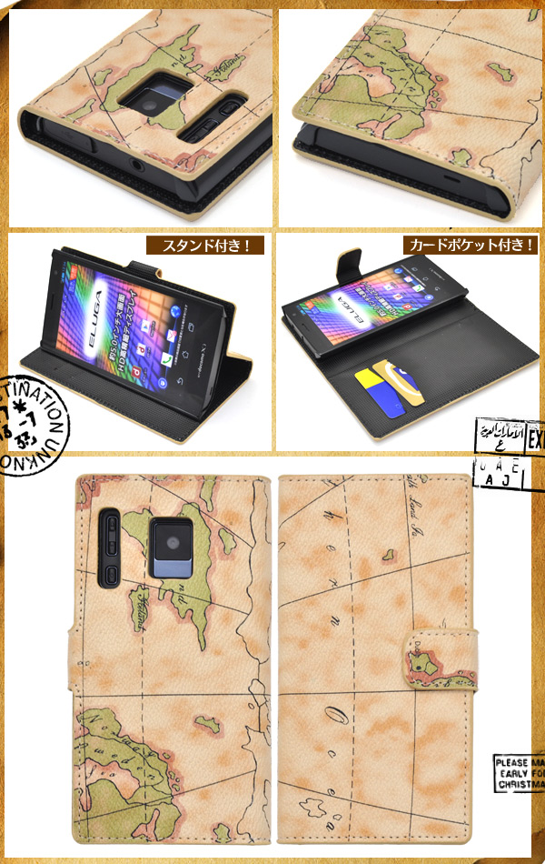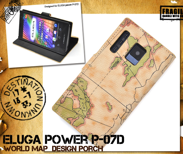レトロな世界地図デザインがオシャレな、ELUGA power P-07D用ケースポーチ!