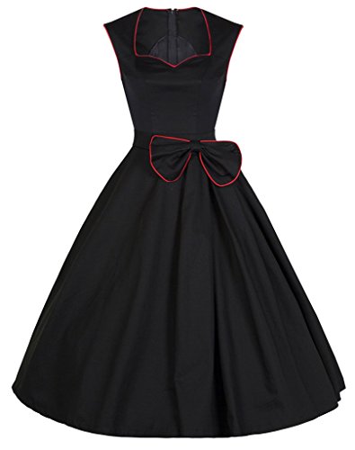 -. Title : YACUN Damen 50s Retro vintage Rockabilly kleid Hepburn Stil Rundausschnitt Partykleid Cocktailkleid