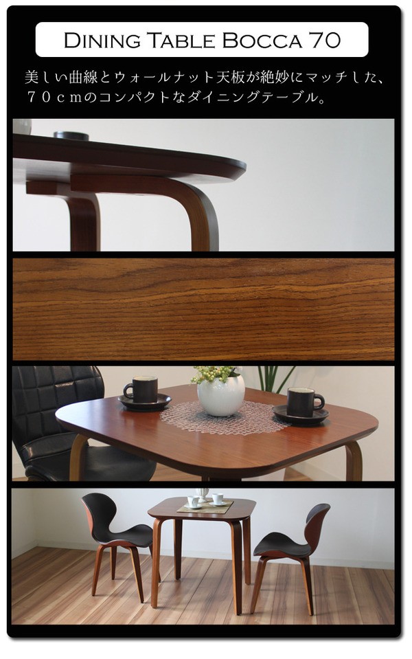 【商品名】ダイニングテーブル/リビングテーブル 【正方形 幅70.5cm】 木製/ウォールナット材突板 『ボッカ70』 ミディアムブラウン