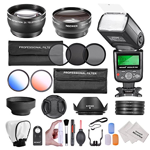 - Title : Neewer® 52MM Complete Accessory Kit for NIKON DSLR (D5300 D5200 D5100 D5000 D3300 D3200 D90 D80),Include:52mm 0.45X Wide Angle Lens+ 52mm 2X Telephoto Lens+ Neewer 750II iTTL Flash For Nikon+ Remote Control + Filter Kit (UV, CPL, ND8) + Macro Close-Up Set + 2 Color Filters + Filter Wallet Pouch + Collapsible Lens Hood + Tulip Lens Hood + Center Pinch Lens Caps + Pop-Up and Soft Flash Diffuser Kit + Deluxe Cleaning Kit with Microfiber Cleaning Cloth