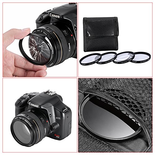 - Feature : Kits include:52mm 0.45X Wide Angle Lens+ 52mm 2X Telephoto Lens+ Neewer 750II iTTL Flash For Nikon+ Remote Control + Filter Kit (UV, CPL, ND8) + Macro Close-Up Set + 2 Color Filters + Filter Wallet Pouch + Collapsible Lens Hood + Tulip Lens Hood + Center Pinch Lens Caps + Pop-Up and Soft Flash Diffuser Kit + Cleaning Kit with Microfiber Cleaning Cloth / NOTE: NOTE: PLEASE VERIFY YOUR CAMERA'S LENS THREAD SIZE BEFORE ORDERING.This kit is compatible with all 52mm lenses. Please verify your camera's lens thread size before ordering. Your camera's lens thread size will be marked somewhere on the lens barrel or printed underneath your lens cap. This number is always preceded by a "Ø" (diameter) symbol. For example: Ø52 = 52mm lens thread size.