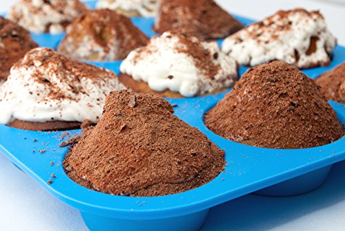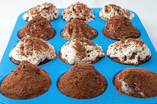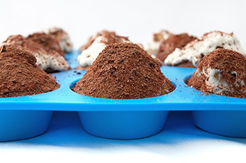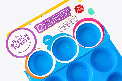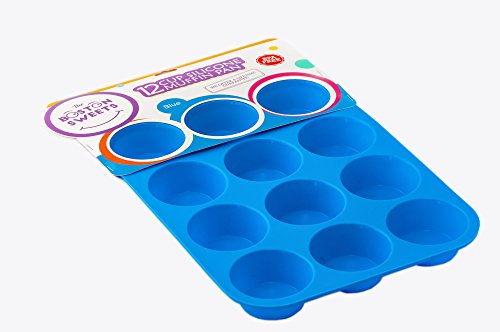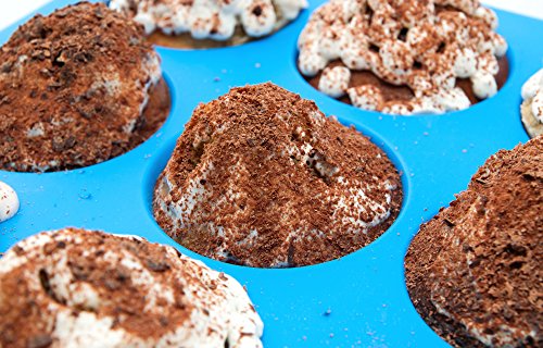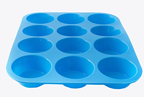 -. Title : Silicone Muffin Pan -12 Jumbo Cups Blue Mold & Baking Tray- Reusable, Non-Stick Bakeware For Cupcakes & Cakes - Heat Resistant, Food Grade & BPA-Free Silicone, Non-Toxic- FREE E-BOOK with 50 RECIPES!