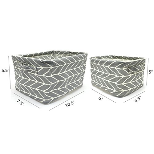 Studio : LEEFUNAD Publisher : LEEFUNAD Binding : Baby Product Product Description Fabric Storage Bin with Two Handles. There is a sturdy steel frame on the top edge for keeping shape well. Perfect for storage kids toys, blankets, towels, DVD, books, magazines, gifts, socks, pet toys. The Storage Baskets are the perfect home decor piece to eliminate clutter and organize your living space such as bathrooms, living rooms, nurseries, bedrooms, laundry rooms, offices, kitchens and more. It fits on a dresser or any shelf looks great, it would be a decorative piece in your room undoubtedly. They are also collapsible,so when you need to bring out the contents you can easily store away. Easy to unfold to use again. Color: Grey. Each One Size: Small: 8 x 6.5 x 5 in.(20 x 16.5 x 12.7 cm) Large: 10.5 x 7.5 x 5.5 in.(26.5 x 19 x 14 cm) Package Included? 2 x basket bin. 1 x chamois cloth of JIALEEY. Package Weight: 7.4 oz. About Linen-Cotton Blend Fabric: Linen is known to be the world's strongest natural fiber.It is so durable it's even used in paper money to increase strength! It is thicker than cotton and linen fiber has variable lengths,most of which are very long.This contributes to strength,which contributes to longevity.Linen lasts a very long time. Kindly Tips: The storage bag is folded package which may result in wrinkled in storage and transit. It will recover after filled with products for some time, and also can be smoothed out by steam iron and hairdryer.