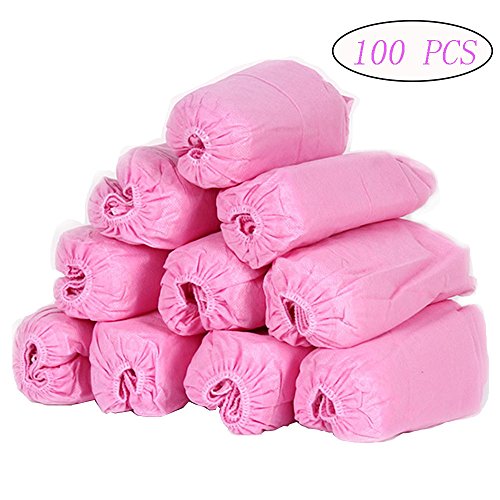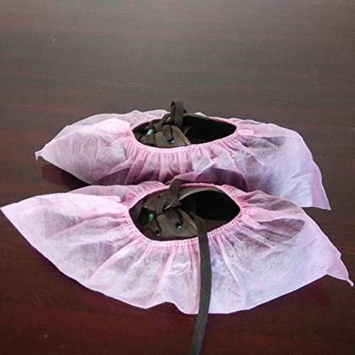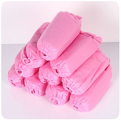 CHRISLZ Disposable Overshoes Disposable Anti-skid Durable One-off Shoes Cover Non Woven Fabric Shoe Covers 100 Pieces PINK