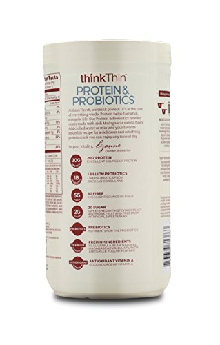ReleaseDate : 2017-03-27 Studio : Prime Health Dietary Supplements, Inc. (thinkProducts) Publisher : Prime Health Dietary Supplements, Inc. (thinkProducts) Binding : Health and Beauty Product Description thinkThin Protein Probiotics Whey Powder, Madagascar Vanilla Bean helps support overall wellness. Each serving delivers 20 grams of protein, is high in fiber, and contains 1 billion CFUs probiotics (Bacillus Coagulans GBI-30 6086). Made with real vanilla bean and rich Madagascar vanilla flavor, simply add chilled water or mix into your favorite smoothie recipe for a delicious and satisfying protein drink you can enjoy any time of day. 0