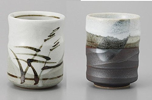 (Mino Ware)/Kitchen Dining/Tableware/DIRECT FROM USA/Japanese tea cups Yunomi brown and reed motif beautiful design, set of 2, 6 ounce