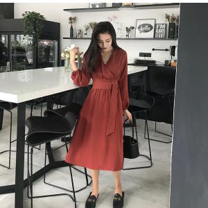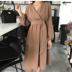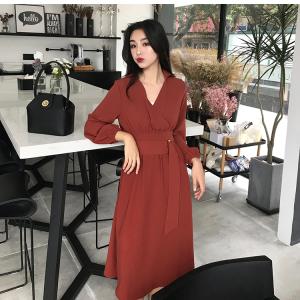 カシュクールワンピース Vネック 膝丈ワンピース フレアスカート 上品 プチプラ シンプル 大人ワンピース 大人可愛い