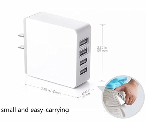 Suriora 4 Port USB Outlet Wall Charger,Suriora 30 Watt High Speed for iPhone 6/6S/ 6/6S Plus/5/5S/SE,Samsung,HTC,Motorola, Nokia,Android,Tablet,and All Other Smartphones (White)