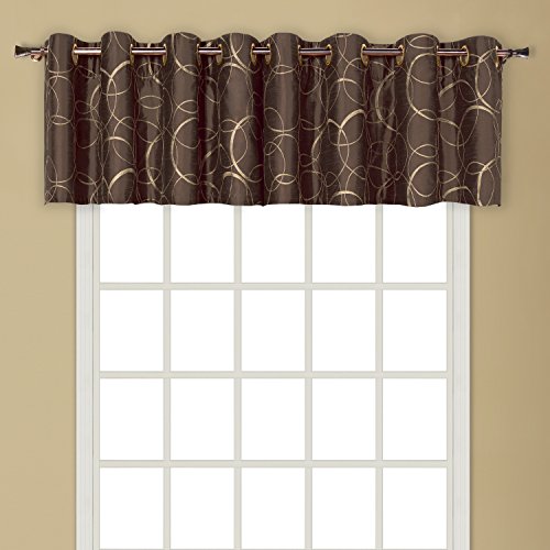 United Curtain Sinclair Embroidered Grommet Valance, 54 by 18-Inch, Chocolate