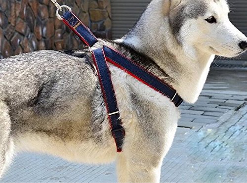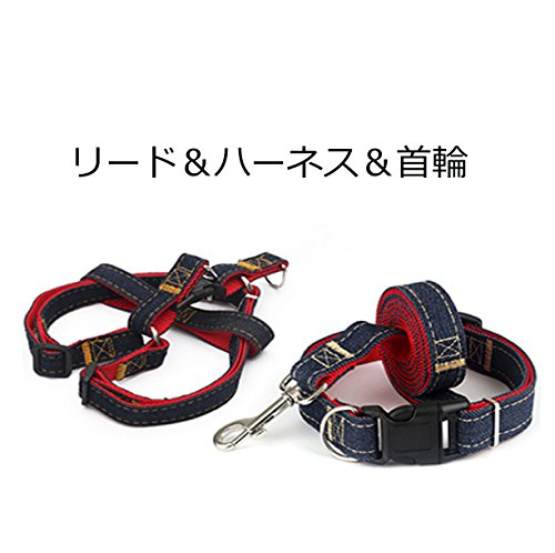 원본상품명: (DauStage) デニム 素材 ハ?ネス リ?ド 首輪 セット 選べる 3色 4サイズ 小型 中型 大型 犬用 ト?トバッグ付き (L, ?)