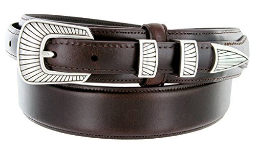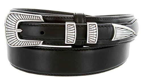 (Hagora)/Accessories/Belts Buckles/DIRECT FROM USA/Hagora Men 1-3/8" Wide Stitched Leather Silver Striped Texture Buckle Belt