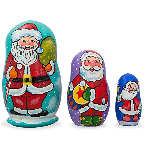 -. Title : 4.25" Set of 3 Santa Claus with Gifts Wooden Nesting Dolls Figurines