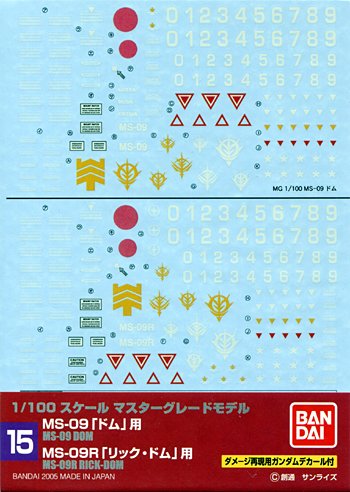 1/100 건담 데칼 MG 돔 릭 돔용 (15)