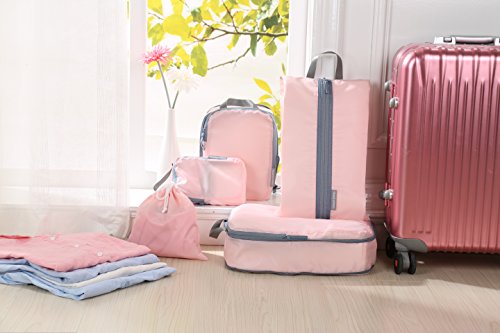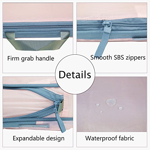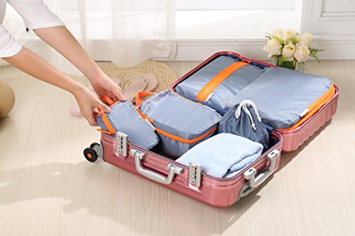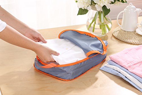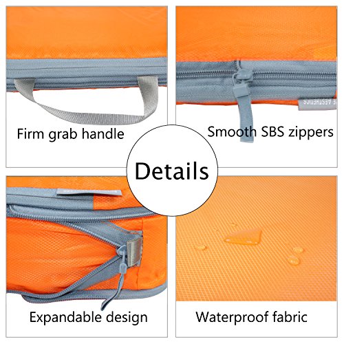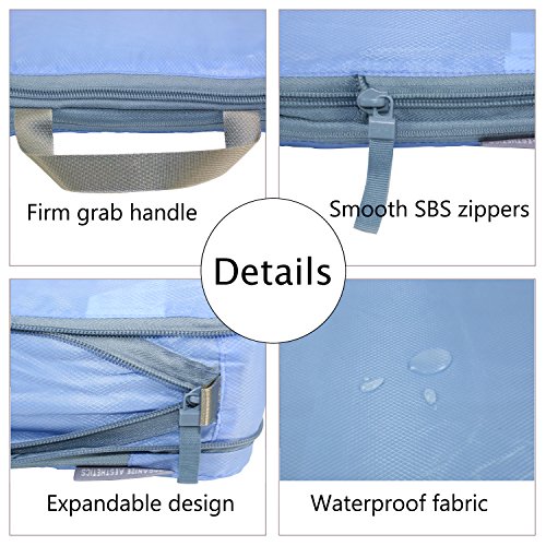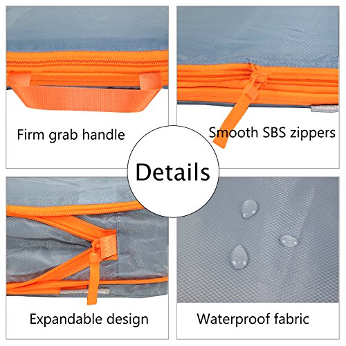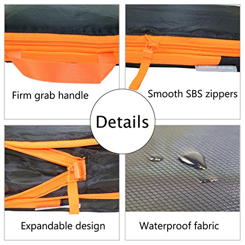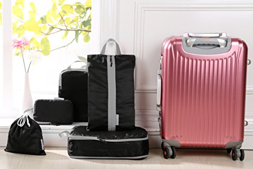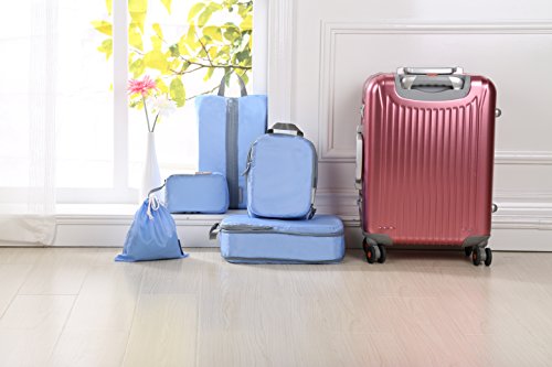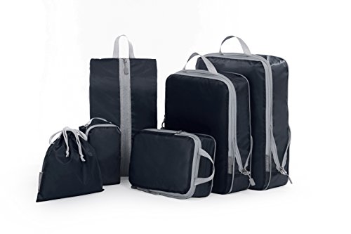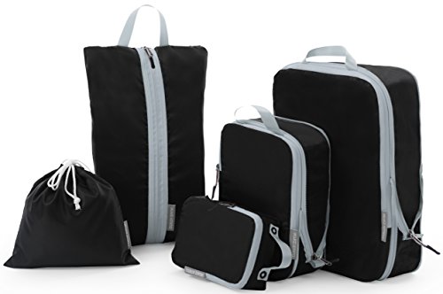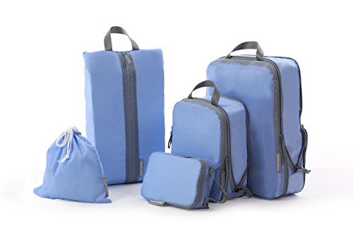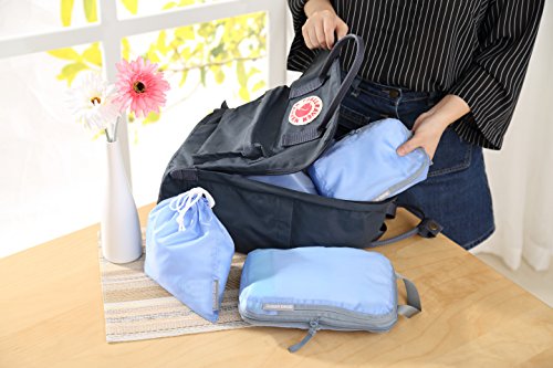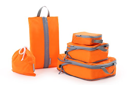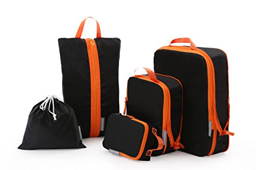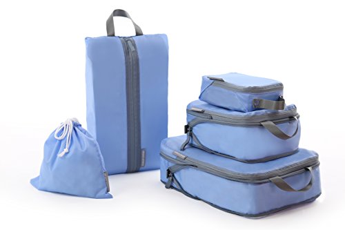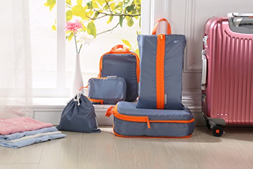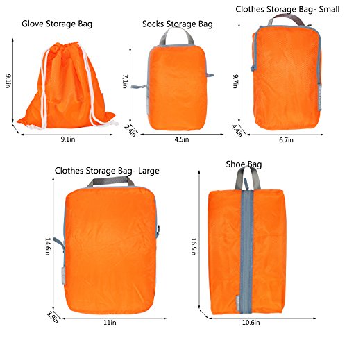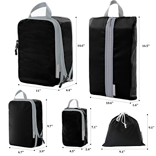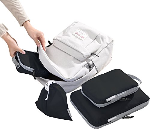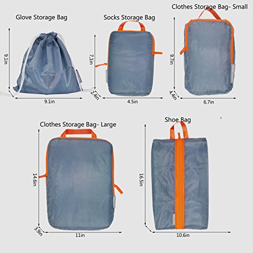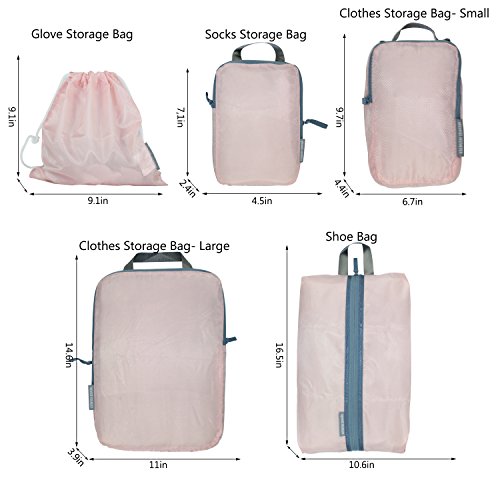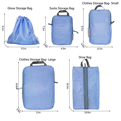 Product Description 1. Multi-function Keep Luggage Tidy and Clean. When you are traveling or on a business trip, JJ POWER Packing Cubes help to organize your luggage and provide optimum utilization of interior luggage space. Our 5 pieces packing cubes are multifunctional, includes 1 large size clothes storage bag, 1 small size cloth storage bag, 1 shoe bag, 1 socks storage bag and 1 glove storage bag. Easy to regular and find your luggage! 2. Extended layer Design- Save Space. In order to better meet the need of easy journey, we carefully design the extended layer. When the ring zipper is released, the clothes storage bags can accept more clothes; and they can save much space while zipped up. 3. SBS Zipper We use SBS zipper, more smooth, durable and easy to use. 4. Ultra Lightweight, Durable and waterproof. Our packing cube is ultra lightweight, using custom-built oxford fabric, our packing cubes are durable and waterproof. All 5 pieces weight only 0.65 lb, can be your best travel helper but without burden. 5. 100% Satisfaction Guarantee. If you are not satisfied with our products, please feel free to contact us, we'll take care of you as soon as possible. Dimensions: Clothes Storage Bag- Large(14.6×11 ×3.9 inches)*1; Clothes Storage Bag- Small(9.7 ×6.7 ×4.4 inches)*1; Shoe Bag(15.6 ×10.6 inches)*1; Socks Storage Bag(7.1×4.5 ×2.4 inches)*1; Glove Storage Bag(9.1 ×9.1 inches)*1