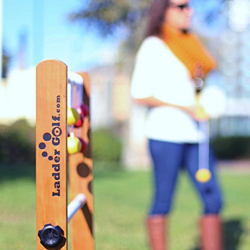 -. Feature : CONTENTS: [1] Official Ladder Golf wooden single tournament game set (1 hardwood ladder); [2] Sets of official Ladder Golf bolas; [1] Heavy-duty zipper duffle style double Ladder Golf carrying bag; [1] Set of official rules / DESIGN: Newly re-designed 12-inch rope length for our bolas; Made with real golf balls and a specially designed brass insert / Made from high-quality materials such as solid hardwood, real golf balls, brass hardware, and solid rungs / Wooden game that is simple and fun for all ages; Super fast and easy to setup / Official Ladder Golf© Brand Quality Guarantee: 1-year Ladder Golf quality guarantee warranty on parts