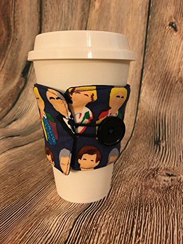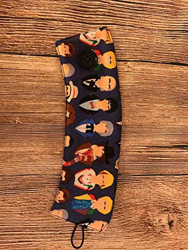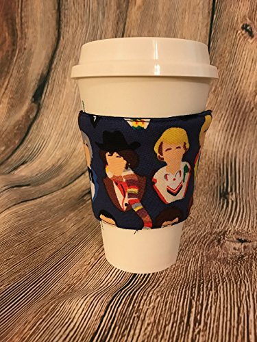 Product Description Doctor Who is that? Have all the Doctors on your cup for wibbly-wobbly, timey-wimey adventures. You too can be a companion with this fun and fashionable cozy. The Cozy measures 9.5" long and 3" wide. 0