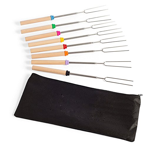 The perfect hassle-free roasting sticks Do you want to relax around the fire androast food without getting close and burning yourself? ?Were those metal roasting sticks that youtried before too flimsy to use again? ?Are you tired of putting your food on dirtysticks that you found on the ground? ?Introducing The Camper's Call TelescopingMarshmallow Roasting Sticks! ?Made from FDA Approved and Easy to Clean Stainless Steel ?32" Telescoping length ensures you are nowhere near the fire'sheat while roasting those delicious marshmallows ?Each stick is made with non-sharp points and a wood handle toppedwith a different color cap ?Every kit comes in a FREE travel bag to allow for easy storage ? Package include? 8 x 32 Inch Sticks Patio Fire Pit/CampfireForks 1 x pouch 0 |