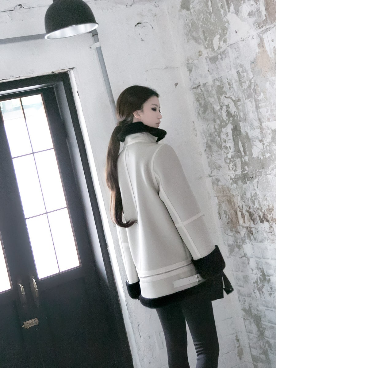 J-4800 위즌 컷팅 배색 무스탕 Ivory E-4259 어패럴 레터링 벨벳 탑 Ivory P1797 페르닐 하이웨스트 레깅스 Cotton Black AH-084 심플 골지워머(27차리오더) Black AR-1911 사선 컷팅 스웨이드 힐(3차리오더) Black