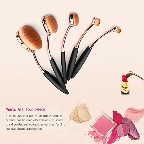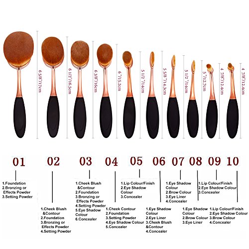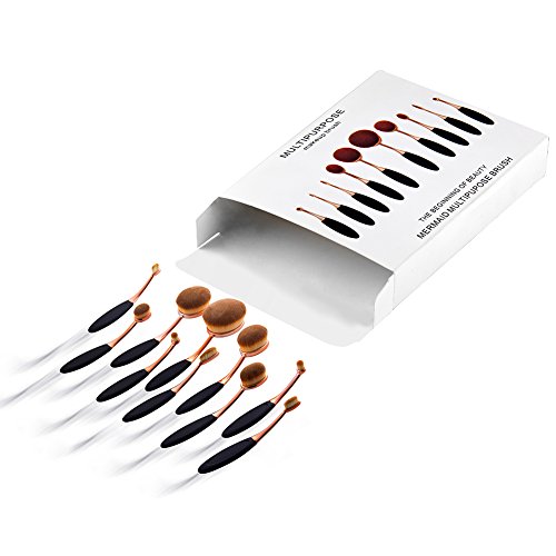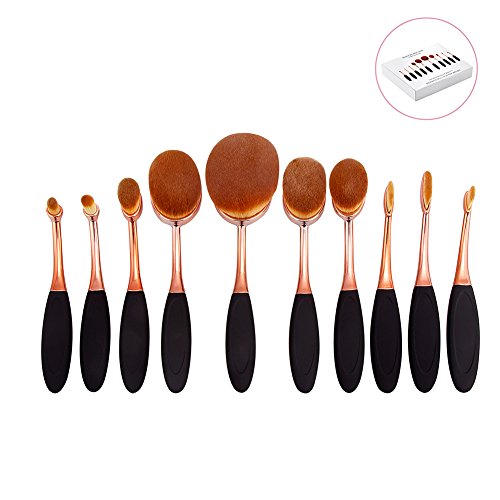 DSCbeauty 10 Pcs Oval Brushes Set Packed with Box Foundation Contour Blush Concealer Eyebrow Eyeliner Blending Cosmetics Brushes Toothbrush...
