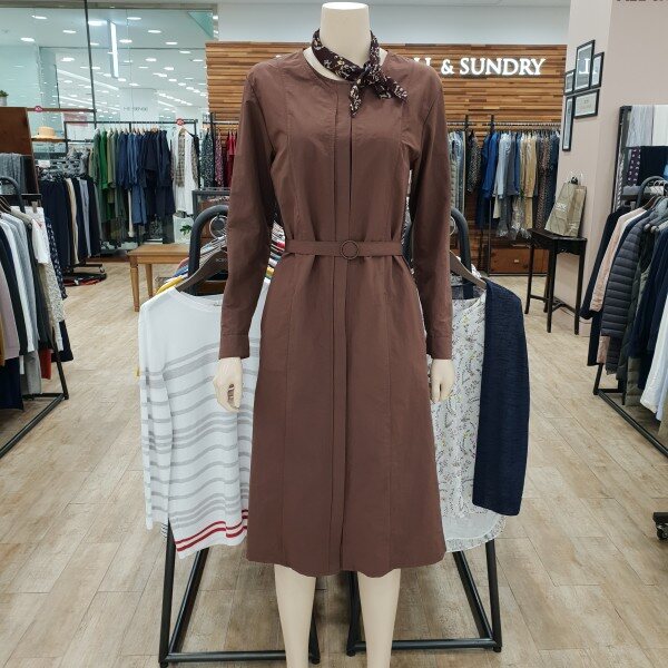 단아하면서도 세련된 무드의 노카라 셔츠형 원피스 *스카프 세트상품