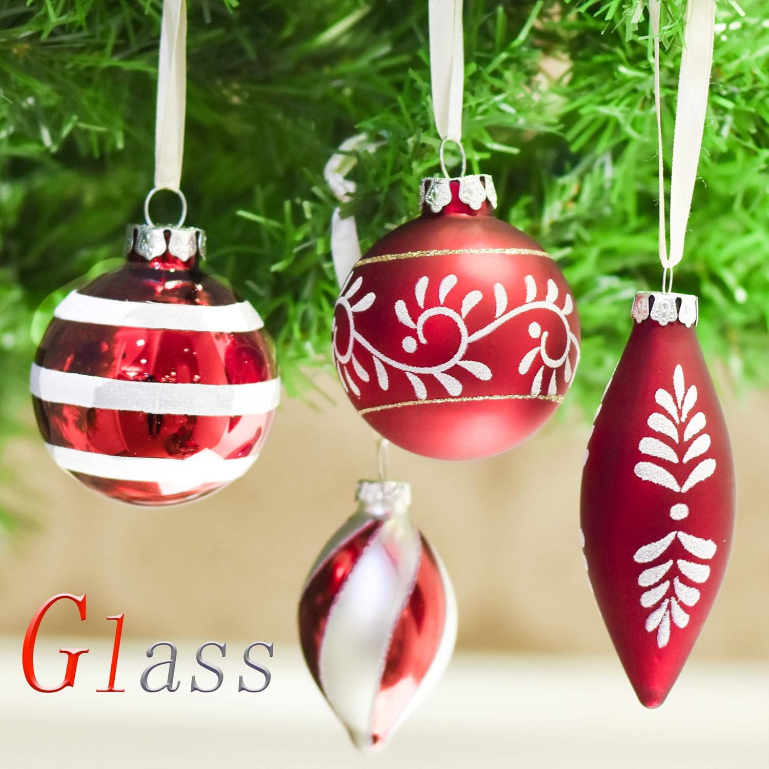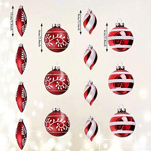 クリスマスツリーを飾りつけるだけではなく、オリジナルのボール型のビーズガーランド、テーブルセッティングを引き立てる小物としても素敵です サイズこのクリスマスボールオーナメントは14個入り・4種類スタイルです。 定番設計:赤&白を基調にしたオーナメントボールは、クリスマスツリーやお部屋を飾るオブジェにピッタリ! グリッターのある表面処理は光の下で、キラキラと輝き、華麗な雰囲気をプラスすることができます。 頂上にリングが着けているためクリスマスツリーに掛けるには便利です。