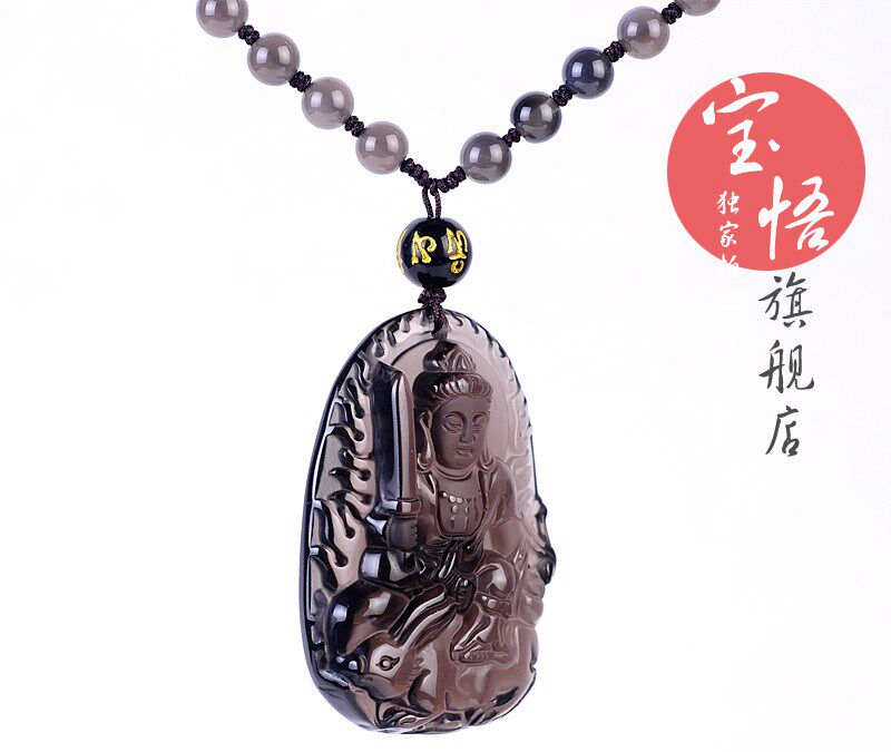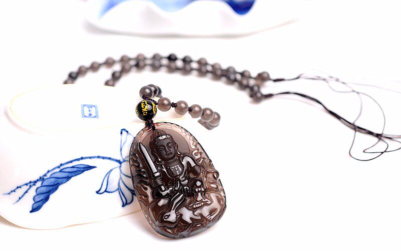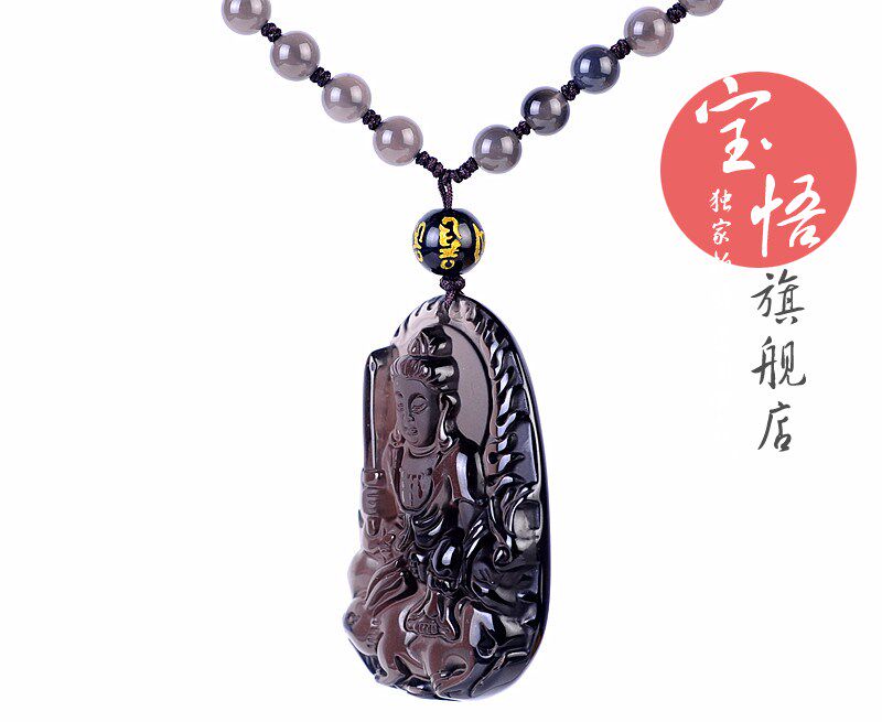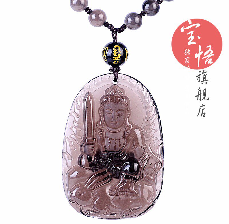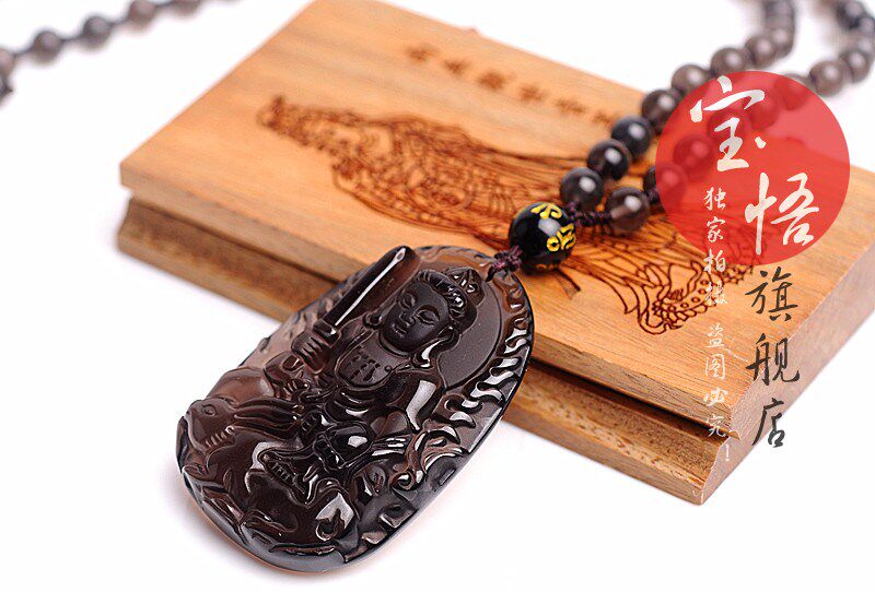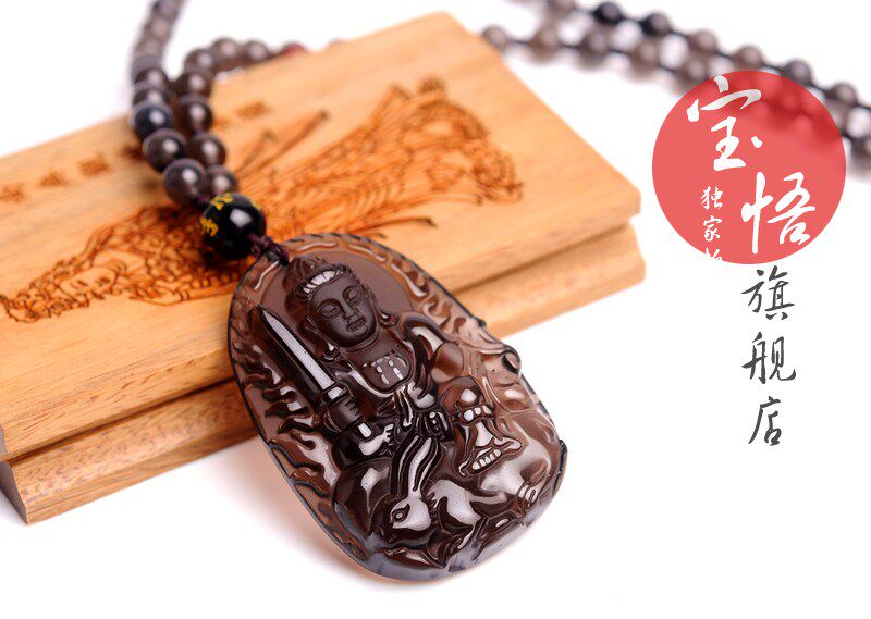 开光天然冰种磨砂黑曜石生肖兔本命佛守护神文殊菩萨吊坠