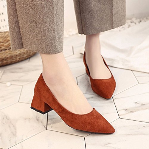 Product Description GIY Women's retro loafer suede pointed toe slip on block heel, classic comfort walking loafers dress shoes, High quality and durable rubber sole, these fashion casual loafers shoes is great for wearing to work or dressing up an outfit for a day and night out. features cushion soft technology for added comfort. 0