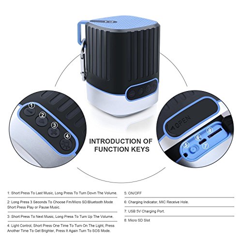 -. Title : Outdoor Bluetooth Speakers,BOOMER VIVI Portable Wireless Speaker with HD Audio Super Bass, 2 Mode LED Lights, SOS Flash,TF Card Slot Outdoor Mini Speaker with Buckle for Camping, Hiking