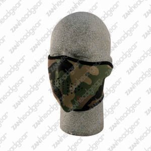 Studio : Zan Headgear Publisher : Zan Headgear Product Description Neoprene 1/2 face mask features full coverage of nose, chin, and cheeks. Stretchy neoprene material is warm and water resistant. Lined with black stretch nylon trim. Patterns are reversible to solid black material. Velcro closure ensures great fit with goggles, with a helmet or without. One size fits most. Woodland Camouflage. 0