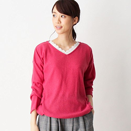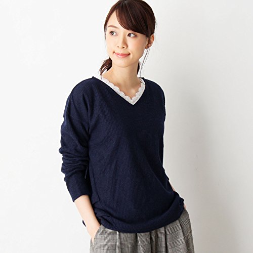 -. Title : (サンカンシオン) 3can4on ふわ起毛Vネックニット+レースファブリック 54013158