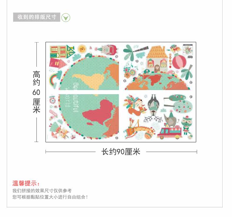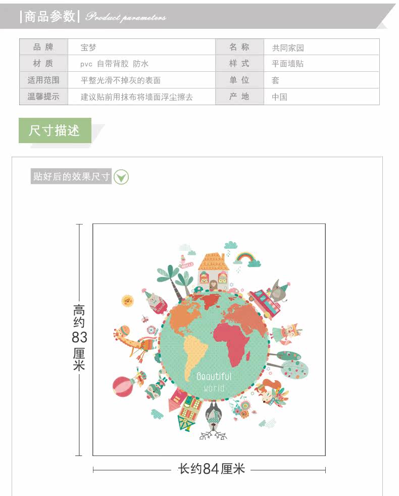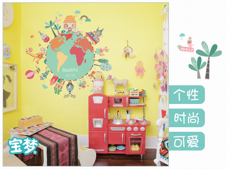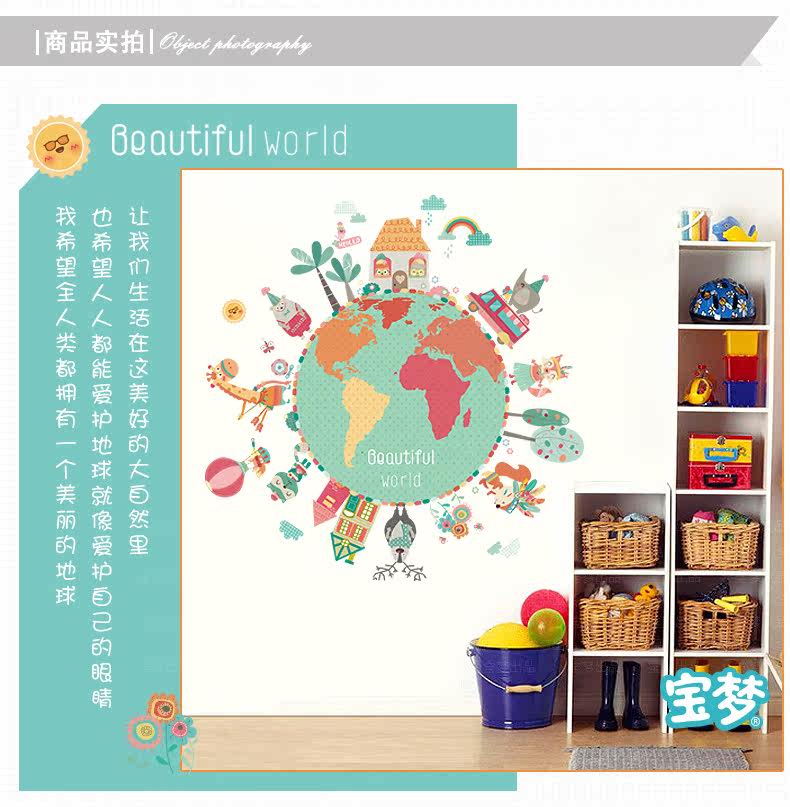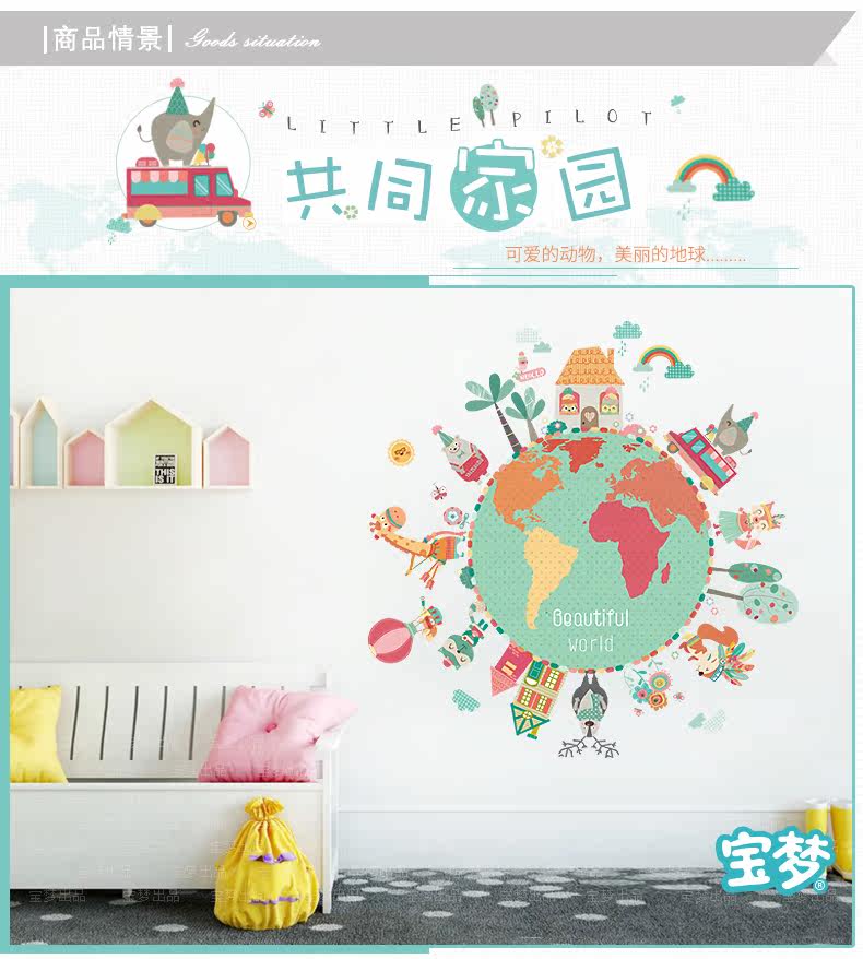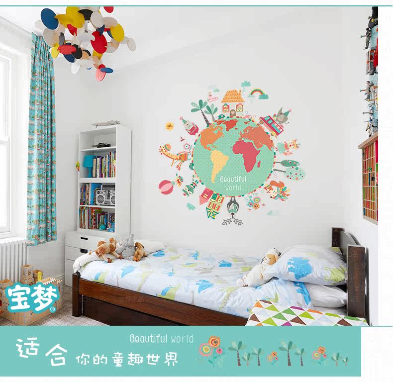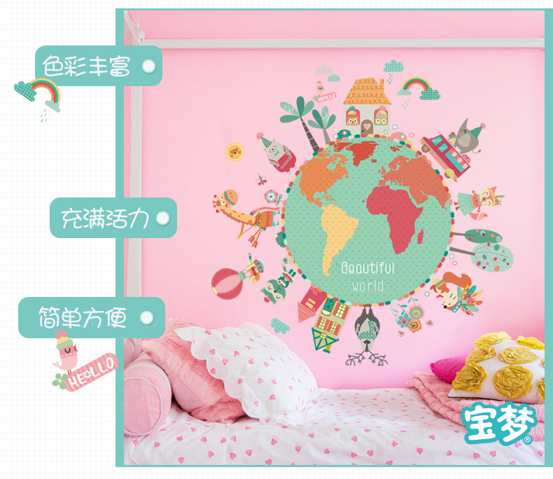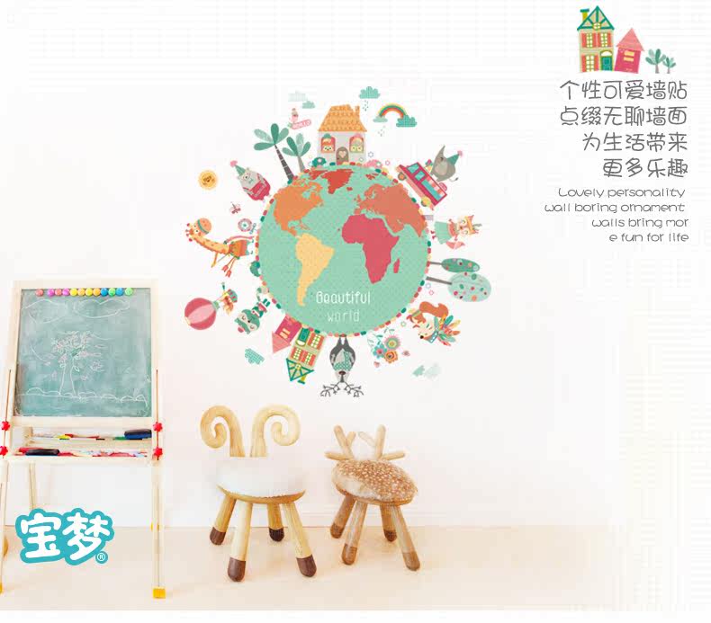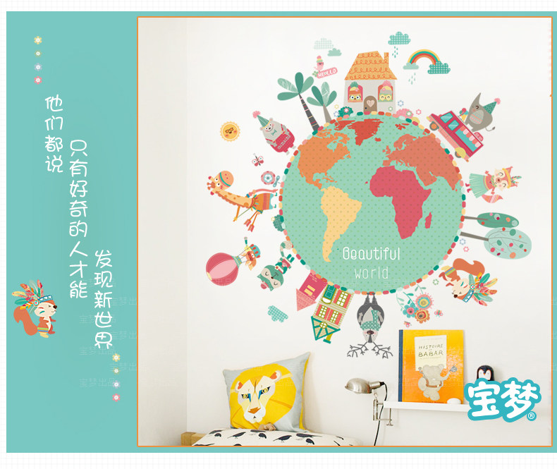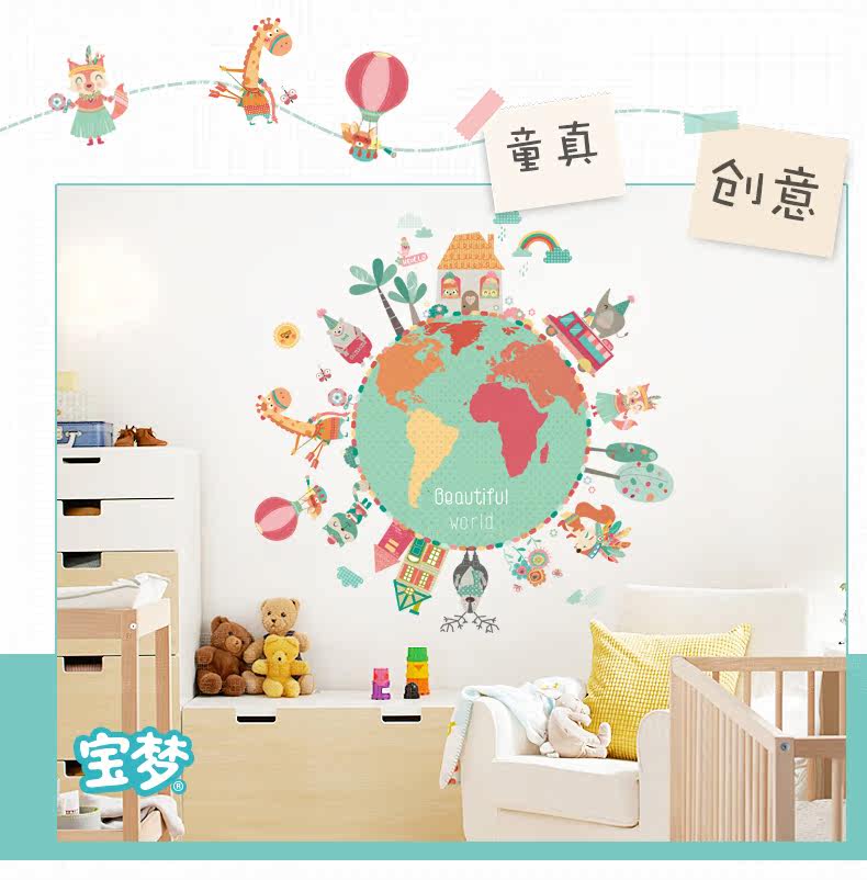 创意个性地球墙贴纸时尚客厅卧室床头装饰品卡通可爱动物自粘贴画