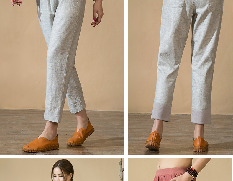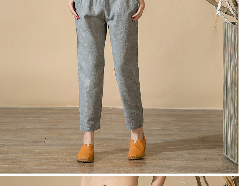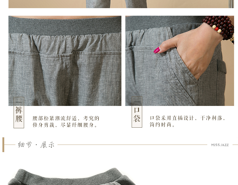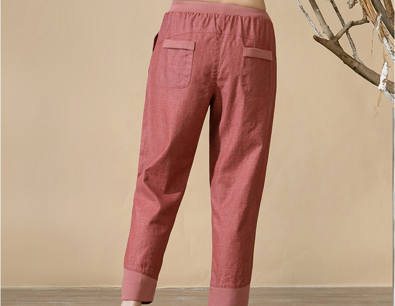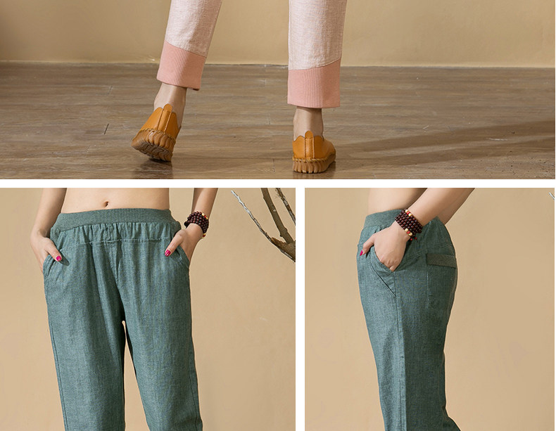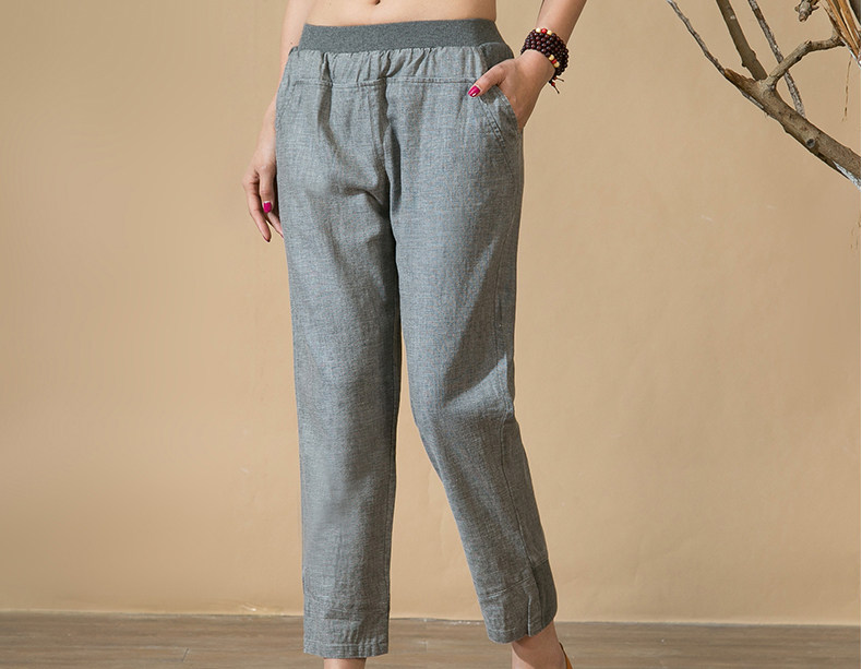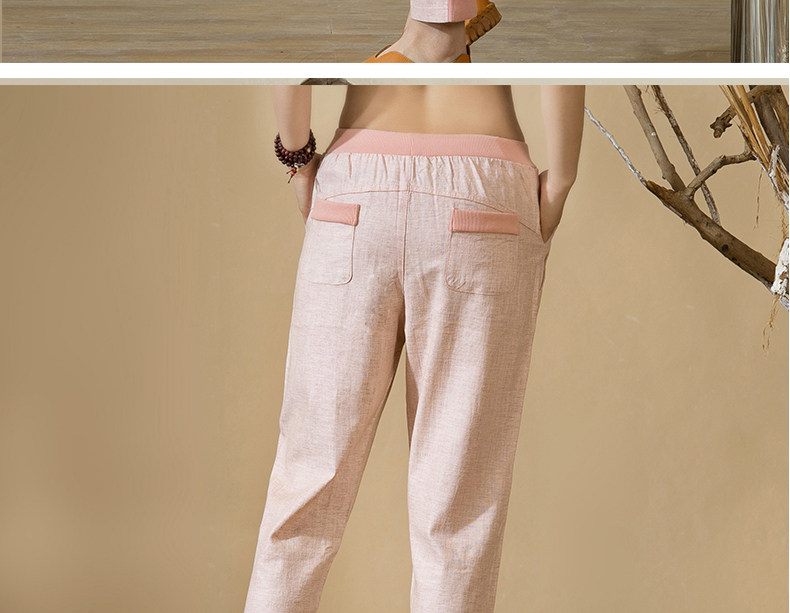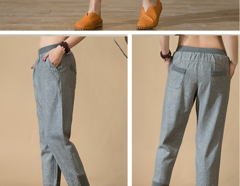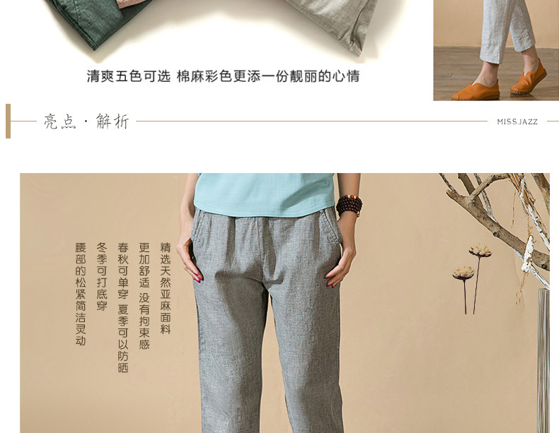 中老年女裤妈妈装春秋夏装中年人亚麻宽松长裤子松紧腰棉麻休闲裤
