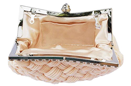 Chicastic Pleated and Braided Rhinestone studded Wedding Evening Bridal Bridesmaid Clutch Purse - Beige