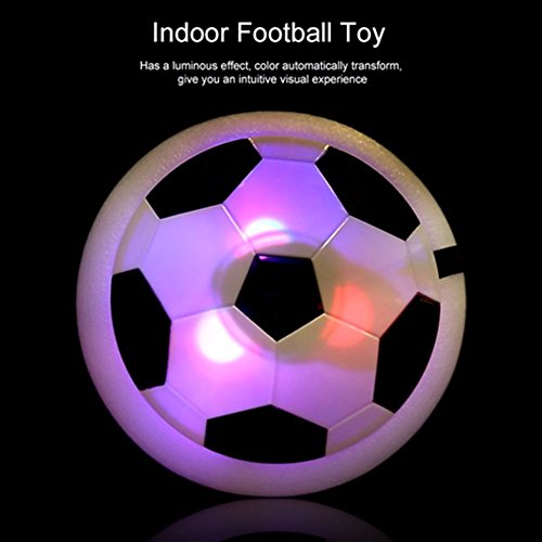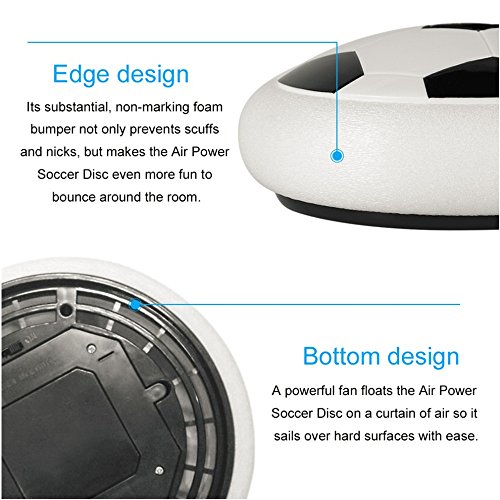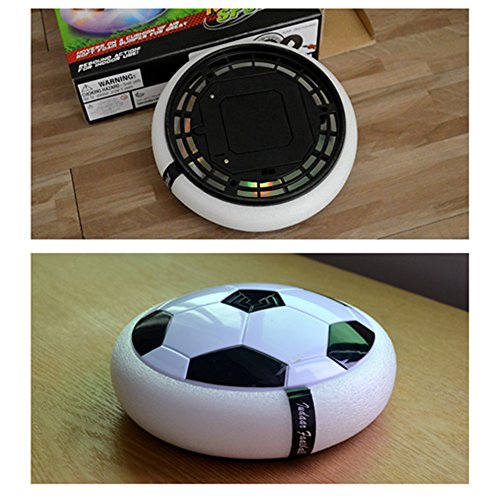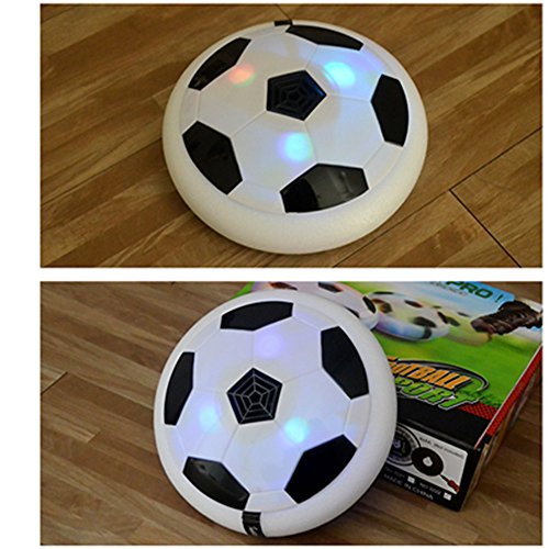 If you want to play with your child using a safe toy, and looking for an affordable toy which is unique, nice quality and very well manufactured so safe for kids, this kids air power soccer is the perfect one for your choice! This football toys is better than a normal round football as no matter how hard you kick it will never go off the floor. It has built-in foam padding so if it does hit a wall or furniture, it will not damage them. The fact that the ball also lights up in various colors is just a bonus. Great item to keep little one busy and active. The lights are bright to play in darkness.So your kids always have lots of fun with it. You can use it on a smooth floor, wood, linoleum, laminate flooring, or carpet. Best way to play with it is on the tiles, because it can float. A perfet gift for the kids who is in love with football! Really cool idea to play ball safely in the house. You can kick it and it'll move like a ball but stay on the ground! Highly recommend! Specifications: Model name: Hover ball Brand name: Uvipu Color: Black white Material: Plastic Power supply: 4 * AA batteries (Not included) product weight: About 250g / 0.55lb Package including: 1 x Uvipu hover ball football How it works: 1. Install 4 "AA" batteries on the bottom of the disk.The 4 "AA" batteries are Not Included. 2. Flip the power switch, put it on a smooth surface and give it a little kick! You'll see the amazing ball with LED lights! Please note: If you have any questions about our product and services, please do not hesitate to contact us, we will try our best to help you! Thank you! 0