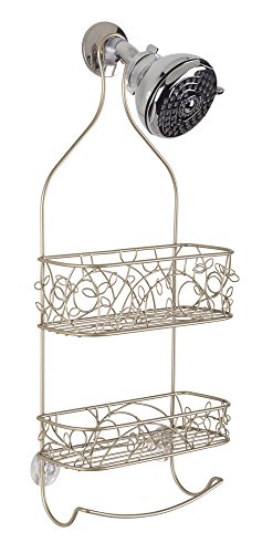 • Decorative shower caddy with 2 shelves and a towel bar