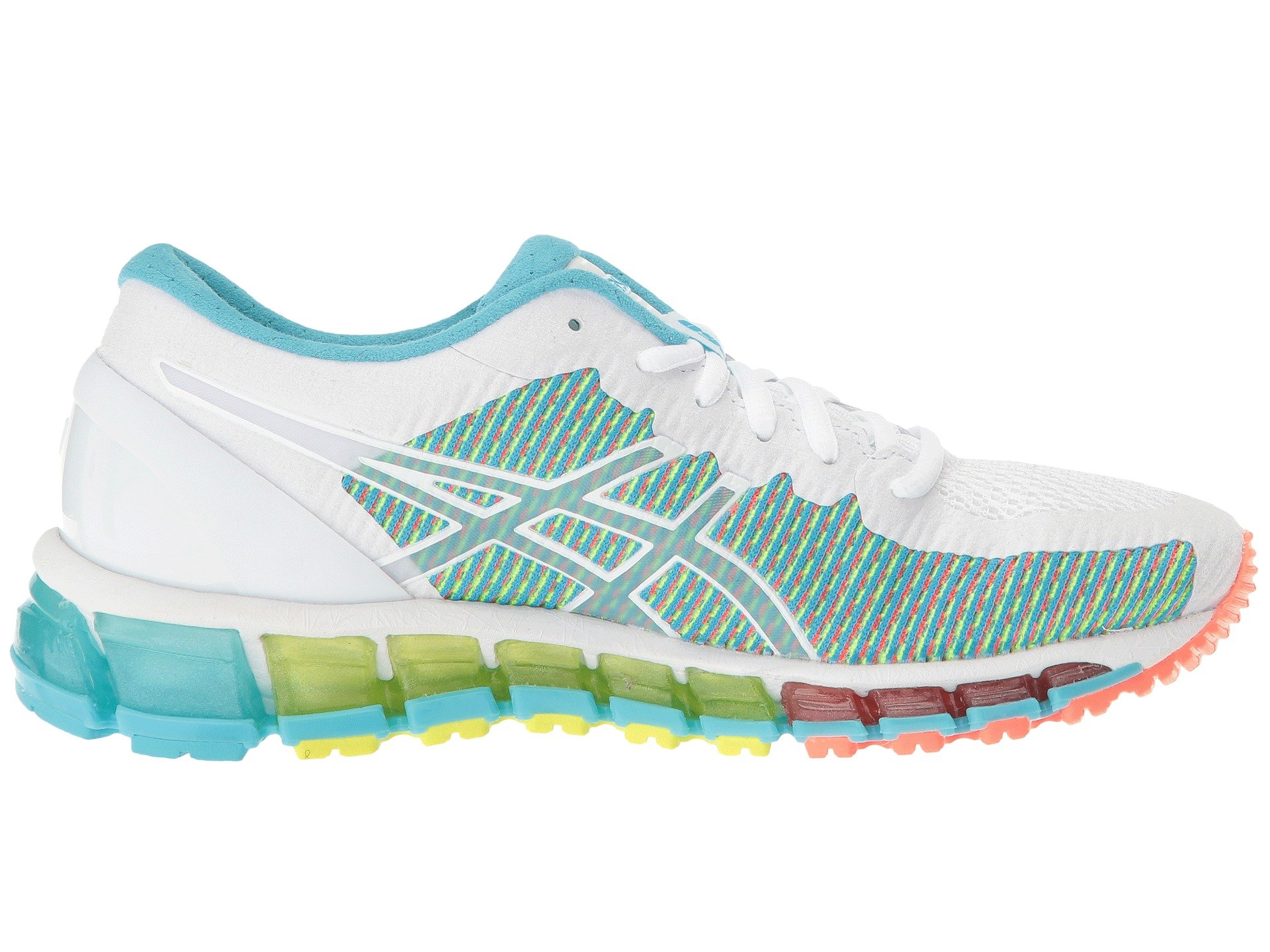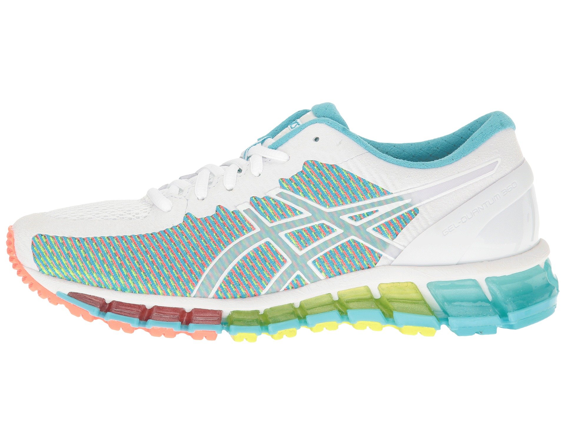| Product Information SKU: #9000574Show your true colors as you pace down the street in the color-shifting brilliance and dynamic cushioning of the ASICS? Gel-Quantum 360 CM running shoe!Support Type: Neutral to underpronation (supination).Cushioning: Maximum cushioning. Surface: Road. Differential: 10 mm.Upper features chameleon color-changing mesh technology.FluidFit? combines multi-directional stretch mesh with stretch reinforcements that adapt to the foot for an enhanced, glove-like fit. Seamless construction in the forefoot helps eliminate the likelihood of irritation. Lace-up closure. Exoskeletal Heel Clutching System™ promotes a better fit and more secure feel. Plush tongue and collar.Smooth fabric lining. Removable ComforDry™ X-40 sockliner features high-rebound properties and exceptional moisture-managing properties. Solyte? midsole delivers featherweight cushioning and long-lasting durability. Forefoot and rearfoot GEL? cushioning breaks up impacting shock during the impact and toe-off phases, while allowing movement in multiple planes through the gait cycle. Heel/Toe: 21 mm/11 mm.Trusstic System™ technology reduces the overall weight of the shoe without compromising structural integrity. Rubber outsole. ComfortDry™ lasting provides underfoot cushioning, without sacrificing breathability. Imported. Product measurements were taken using size 8, width B - Medium. Please note that measurements may vary by size.Weight of footwear is based on a single item, not a pair.Measurements: Weight: 6 oz |