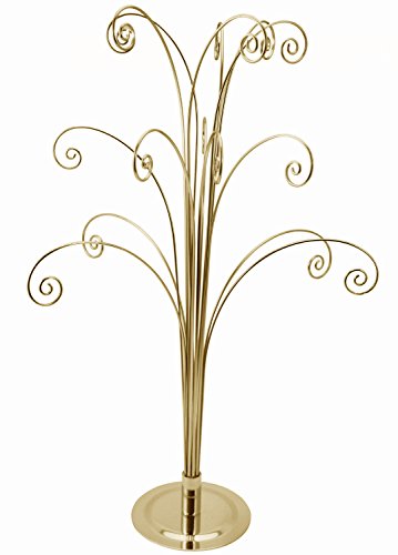 Creative Hobbies 20 Inch Tall Ornament Display Tree, Bright Brass Plated, Holds 15 Ornaments