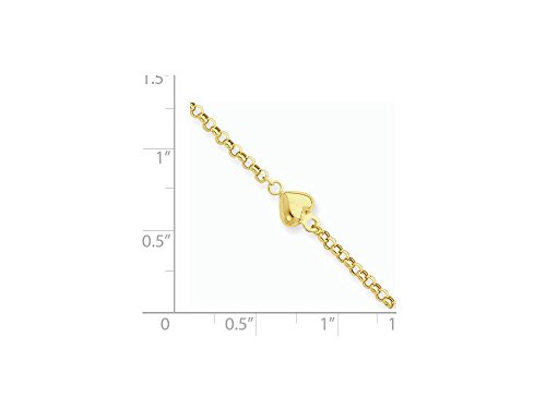 This beautiful 10 Inch 14k Puff Heart 9in With 1in Ext Anklet, crafted in 14 kt Yellow Gold . This design measures 6.00 mm wide, 10.00 Inches long.Charm/Element Length: 6 mm. GIFT CARD OPTION WILL NOT BE AVAILABLE FOR THIS ITEM!Feature