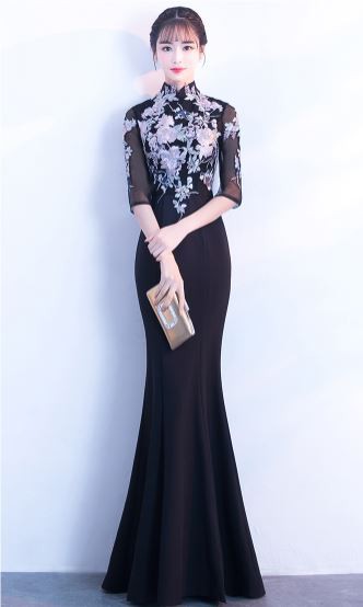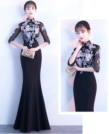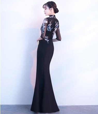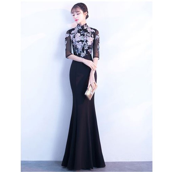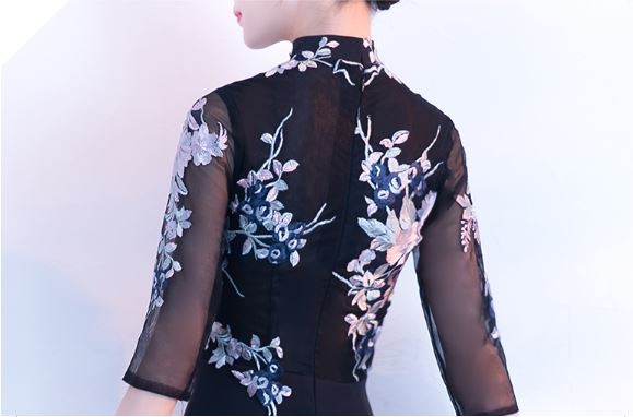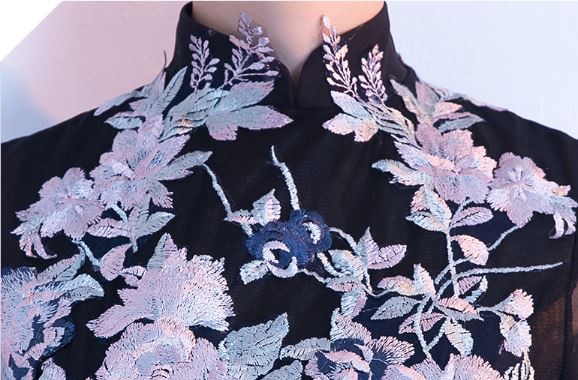 お花モチーフの刺繍が華やかなパーティードレスです。