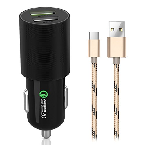 -. Feature : Qualcomm Certified Quick Charge 2.0: Up to 75% faster than standard chargers, able to charge compatible devices to 75% in just 30 minutes. / DC Usb Cigarette Lighter Adapter: Qualcomm chips and Dual Car Charger Unique Thread and brushed aluminum Design with Multiple built-in Safeguards Protect Your Devices Against Excessive Current, Overheating and Overcharging. / Maxdee Advanced Technology: Detects your device to charge at its fastest possible charge speed up to 2.4 amps per port or 4.8 amps overall. The Adaptive Fast Charger supports 5V / 9V / 12V Three Modes, Brings Normal Speed for Non-Quick Charge 2.0 Phones. One Universal Port of Car Charger with 5V/2.4A. / Quick Charge 2.0 Compatible Devices: Apple MacBook A1534 (12-inch, 2015), Google Chromebook Pixel, Pixel C, Google Nexus 5X, LG Nexus 5X, LG G5, Microsoft Lumia 950/950 XL, Nokia N1, HTC 10, Le Max Pro, Meizu Pro 5, NextBit Robin, Asus ZenPad S 8.0, Lenovo ZUK Z1, HP Pavilion x2, HP Elite x3 and More. / What You Get: 1 x Maxdee Quick Charge 2.0 Car Charger and 1 x 3.3 Ft Quick Charge Type-C Cable.