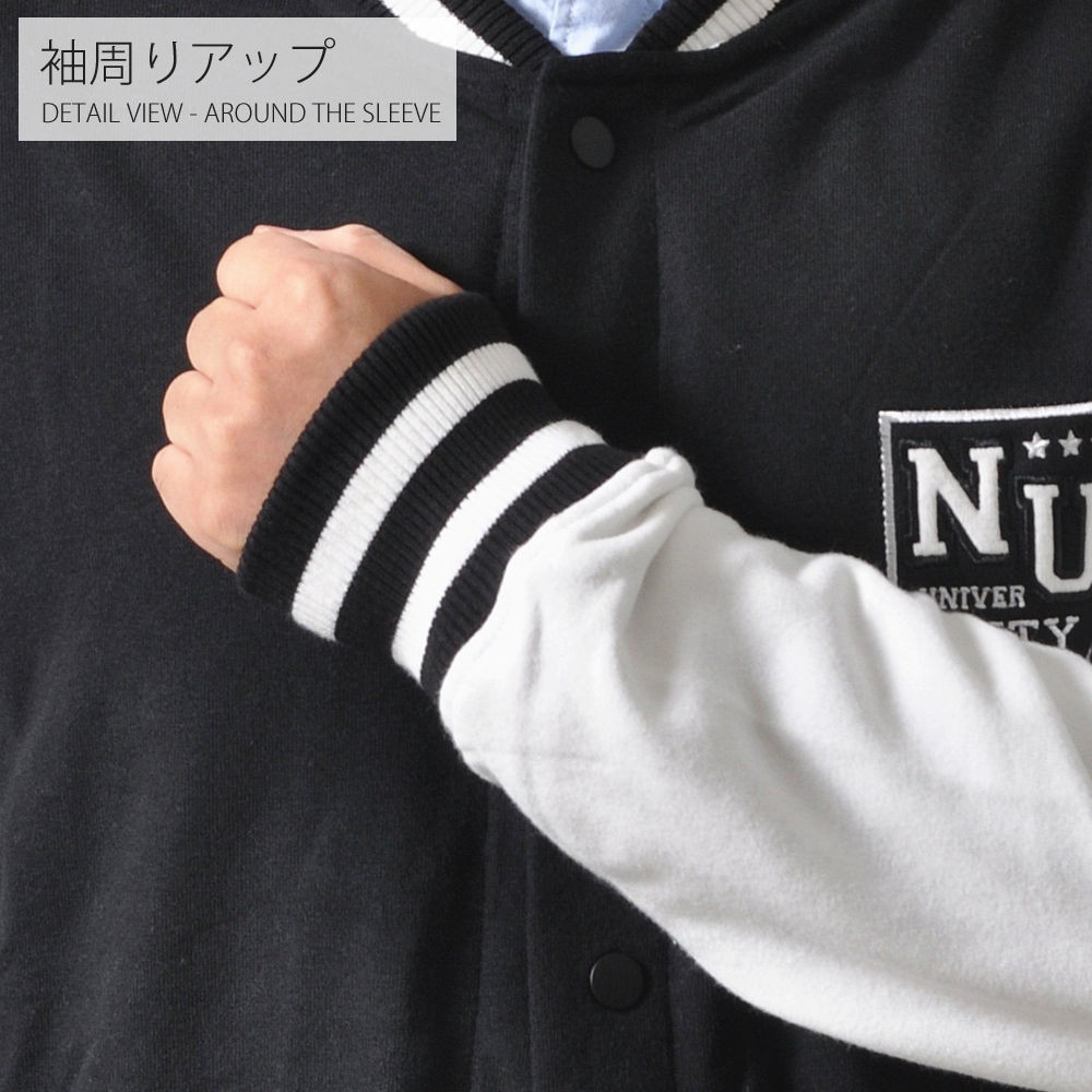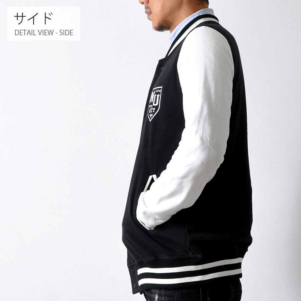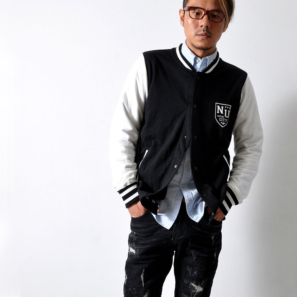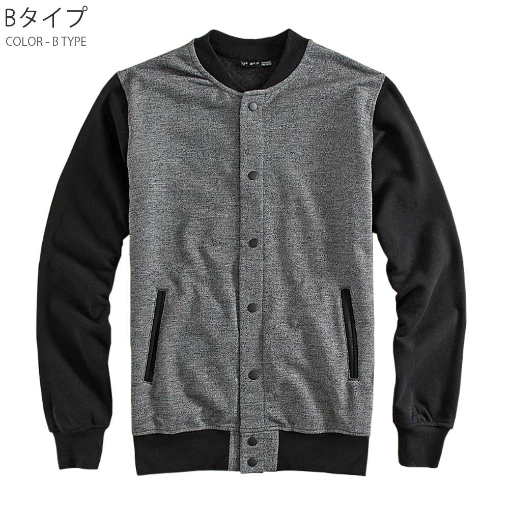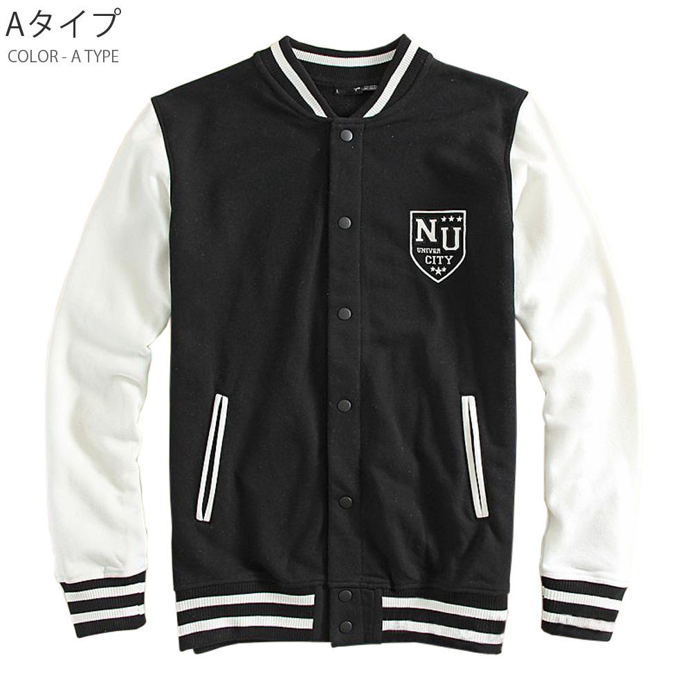羽織るだけでただ、シンプルにかっこいいスタジャン。王道スタイルのAタイプと、クールな配色で落ち着きのあるBタイプ。スウェット素材使用しているので、着心地の良さ・動きやすさも抜群です!