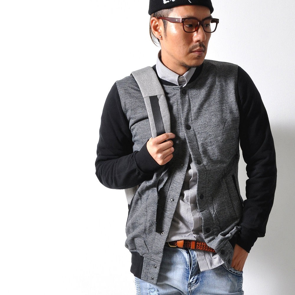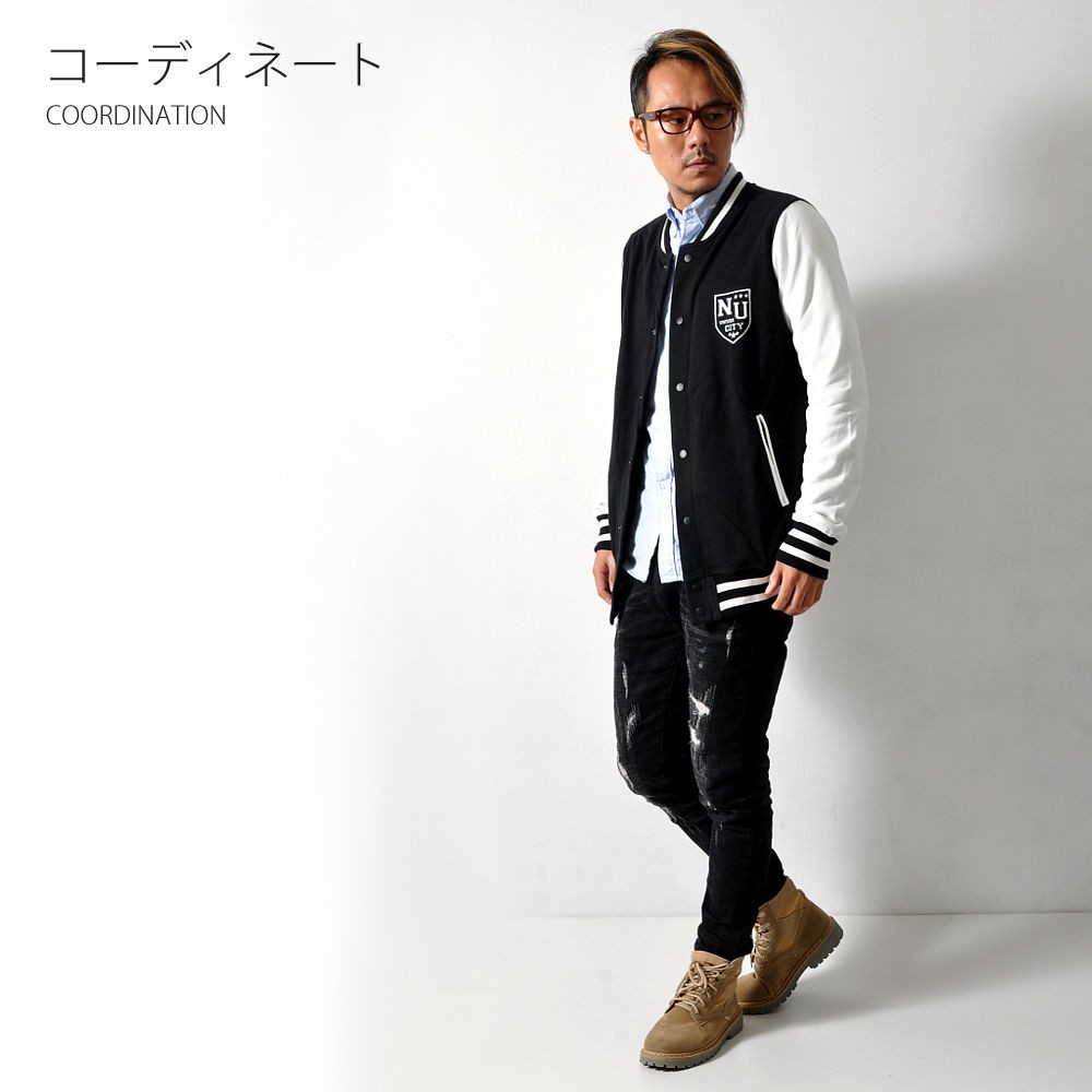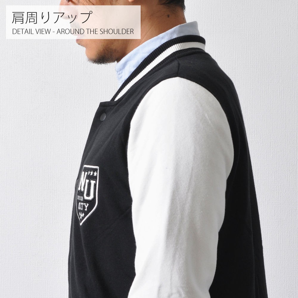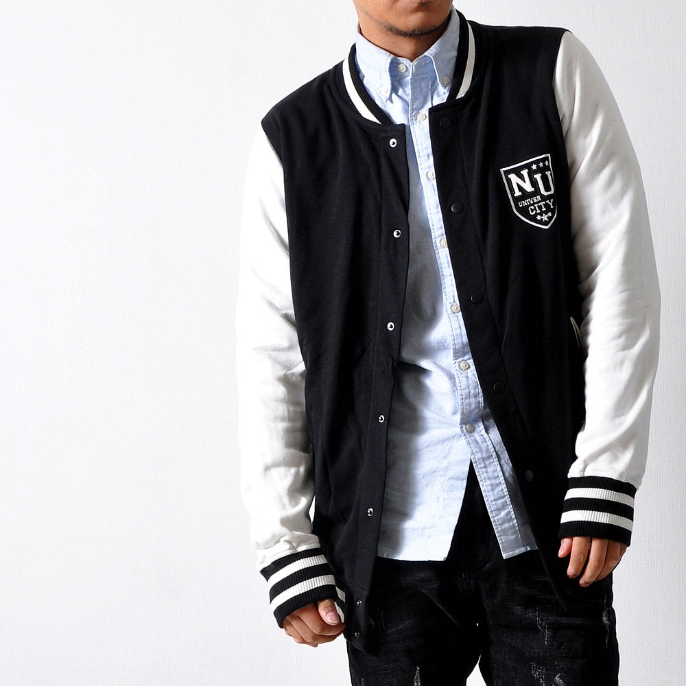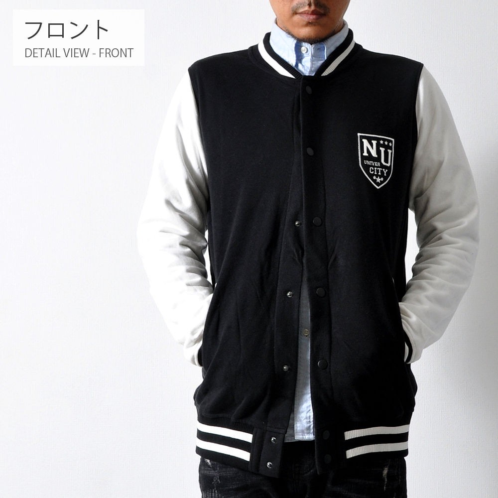 羽織るだけでただ、シンプルにかっこいいスタジャン。王道スタイルのAタイプと、クールな配色で落ち着きのあるBタイプ。スウェット素材使用しているので、着心地の良さ・動きやすさも抜群です!