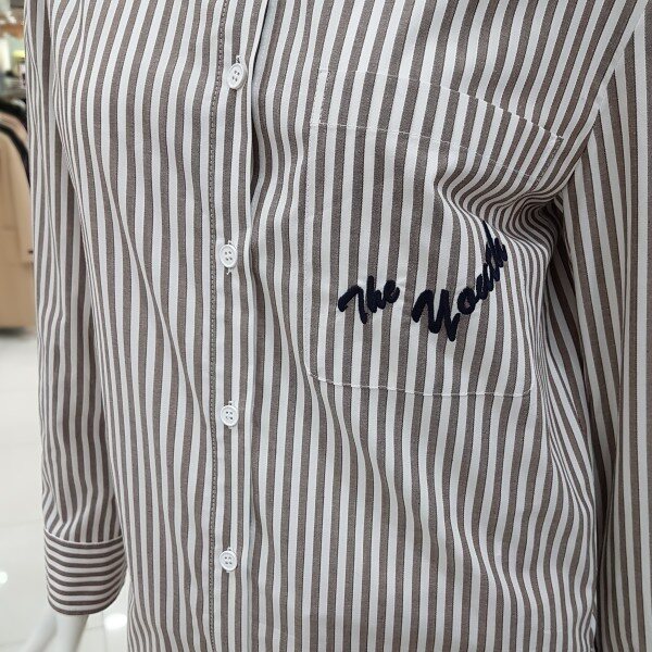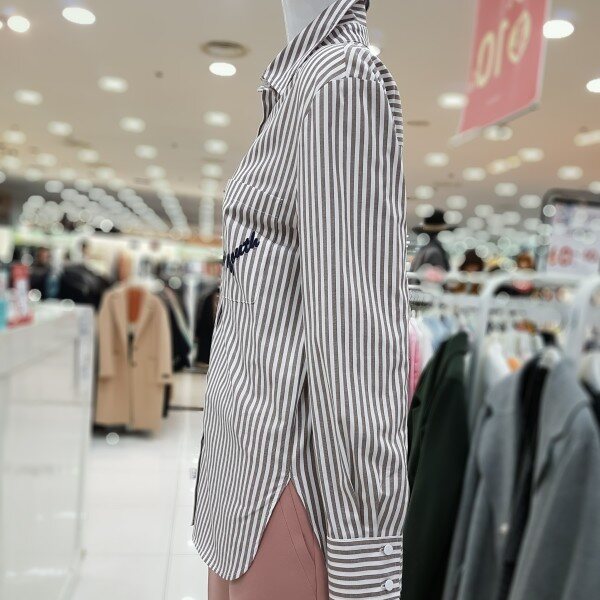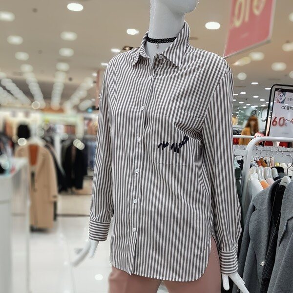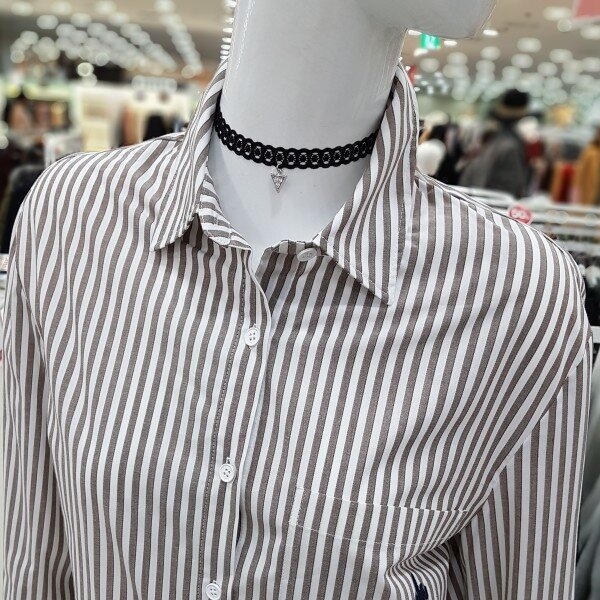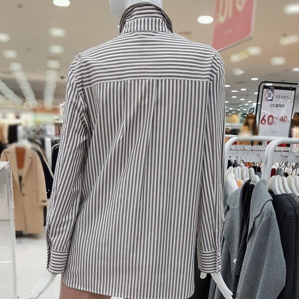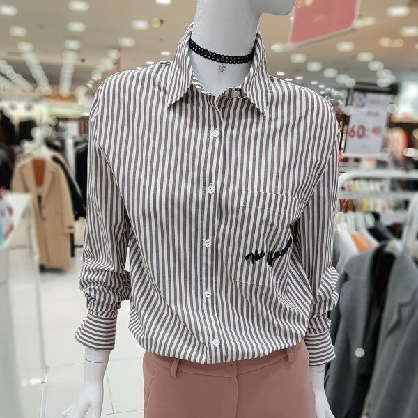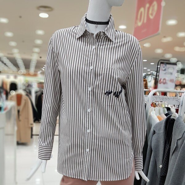 면소재에 깔끔스트라이프 블라우스네용은은한 핑크브라운 배색에 세련하구요여유있는 사이즈에 착용감도 좋아용캐쥬얼,세미정장으로 다양하고멋스럽게 연출하셔용^^
