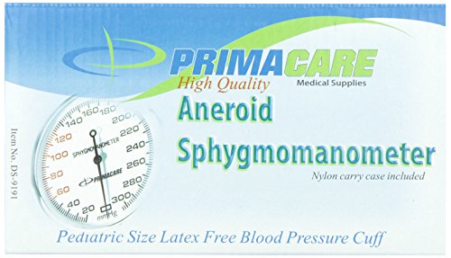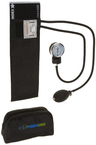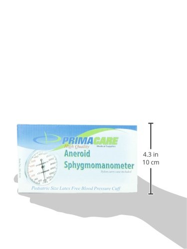 Primacare aneroid sphygmomanometer pediatric blood pressure kit. Taking a patient's blood pressure is one of the most frequent tasks preformed throughout a medical career. Actual measurement is essential in classifying the precise degree of hypertension and determining the correct treatment. Built to last, the Primacare aneroid features a modern design to fit perfectly in the right or left hand. Combined with the easy release deflation valve, the aneroid makes taking accurate blood pressure measurements easy and comfortable. Measures 6-3/4-inches length by 4-1/2-inches height by 2-1/4-inches depth zipped waterproof nylon carrying case.