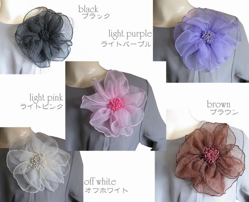 大きめサイズのシフォン素材コサージュ(2way仕様)5色