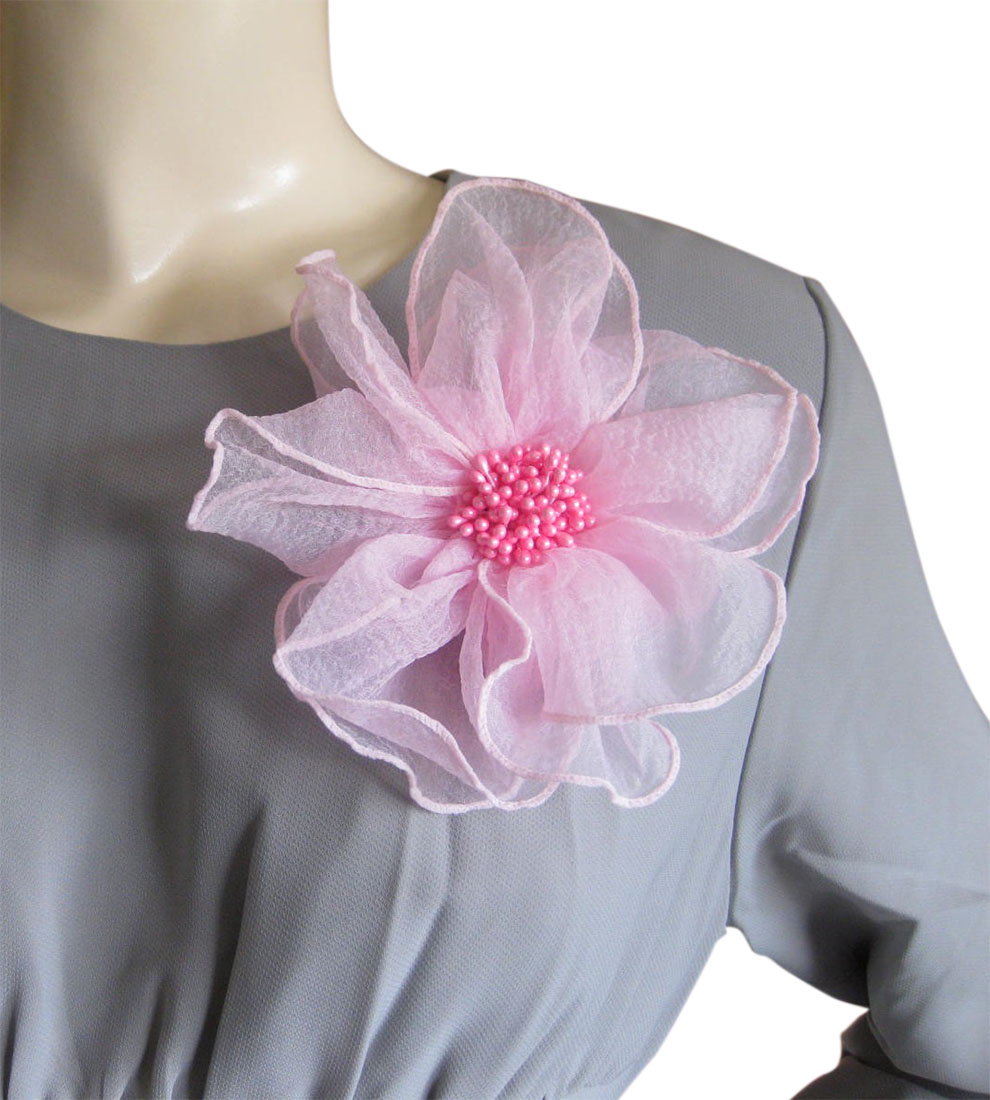 大きめサイズのシフォン素材コサージュ (2way仕様)