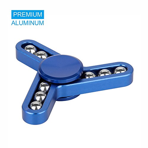 Tri-Fidget Hand Finger Spinner Metal Toy Time Killer for ADD, ADHD, Anxiety, and Autism Adult Children (Blue)