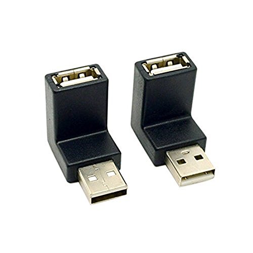 -. Feature : Connect USB Type A cables in tight fit applications Shielding provides EMI/RFI protection / 28 AWG power leads provide maximum power transfer Our USB series low profile right angle USB adapters are perfect for tight fit applications / Our series USB adapters are a much lower cost solution when compared to rotating USB adapters / Two exit options are available allowing cables to exit in opposite directions / Package included: 1 x up angled adapter & 1 x down angled adapter
