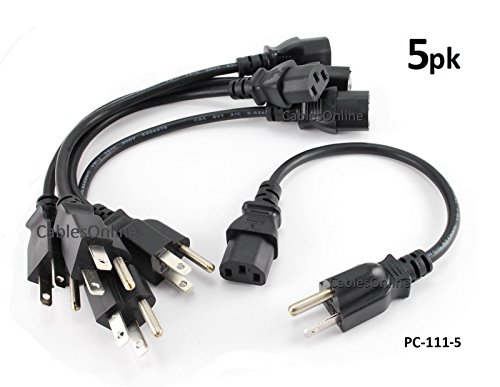 CablesOnline Short 3-Conductor PC Power Cord, 1Feet, 18AWG, NEMA 5-15p to IEC C13 Cable (5 Pack) (PC-111-5)